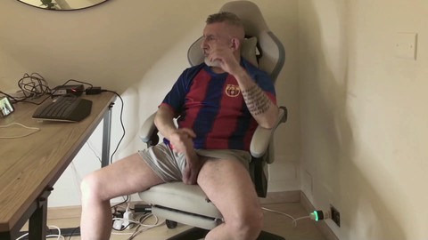 Reifer, Haariger Vater Itapapixxl Spielt Mit Seinem Massiven Schwanz Am Schreibtisch